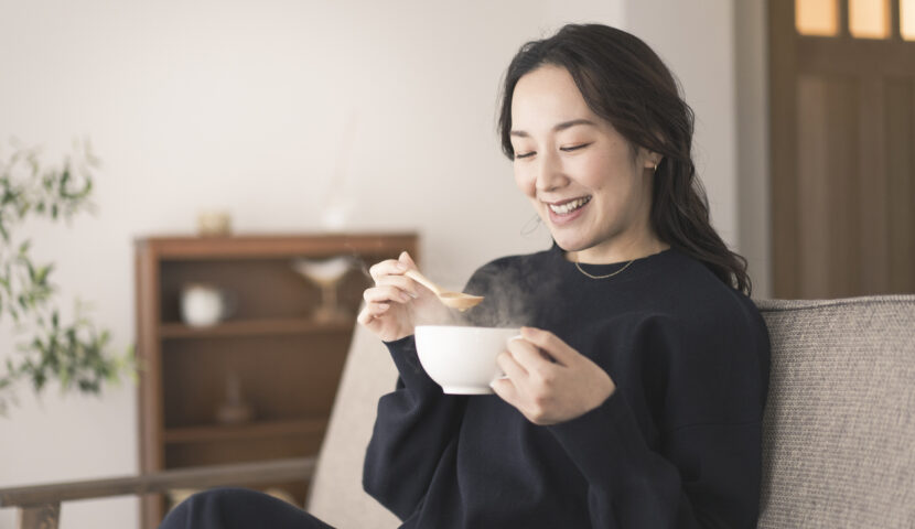 夕食は消化に負担をかけない温かい料理が適しています。スープ・鍋・シチューなど具材の多い汁物は、消化と体温維持の両立が期待できます。